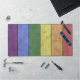Tapis de bureau coloré unique pour lui ou elle. Drapeau LGBT art numérique vintage arc-en-ciel couleurs rouge orange jaune vert bleu violet avec lignes noires rayures bois défoncé look.