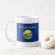 Cette tasse présente le drapeau de Montanan d'un côté et une carte du Montana de l'autre. 'Customise-le ! ' Cette option vous permet d'ajouter vos propres textes/images, si vous le souhaitez. Disponible dans une variété de différents types de tasses. © 2010 FlagAndMap. Carte dérivée des images à l'adresse suivante : www.nationalatlas.gov