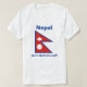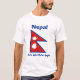 Un titre et un slogan modifiables accompagnent les symboles blancs sur un arrière - plan rouge de forme régulière avec une bordure bleue du drapeau népalais sur le devant de ce t-shirt. Le dos affiche une carte détaillée du Népal.