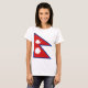Le devant de ce t-shirt affiche hardiment le drapeau népalais avec ses symboles blancs distinctifs sur un arrière - plan rouge de forme régulière avec une frontière bleue. Une carte attrayante du Népal s'ajoute à cette carte au fond.