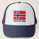 Drapeau norvégien de casquette fait sur commande de camionneur de la Norvège. Le casquette frais de bleu marine pendant des vacances de fierté nationale, la politique, le parti politique et la manifestation sportive internationale aiment le football. Ajoutez votre propre citation ou slogan drôle. Conception scandinave de fierté.