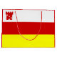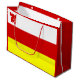 Grand sac cadeau avec drapeau de la ville de Père Noël Barbara, Californie; drapeau avec tricolore vertical de blanc, rouge et jaune, avec illustration d'un fort rouge dans le coin supérieur gauche