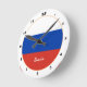 Horloge murale : Russie patriotique et drapeau russe design d'intérieur à la mode - j'aime mon pays, voyage, vacances, patriotes nationaux / fans de sport