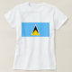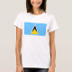 Sur le devant de ce t-shirt, le drapeau Saint-Lucien est orné d'un triangle jaune distinctif sur un triangle noir imbriqué blanc sur un arrière - plan bleu clair. A l'arrière se trouve une belle carte de Sainte-Lucie.