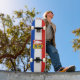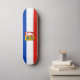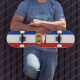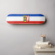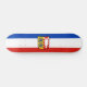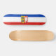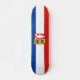 Skateboard avec drapeau de variante du Schleswig-Holstein; design avec tricolore horizontal de rouge, blanc et bleu, et avec armoiries de l’état au centre