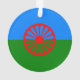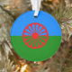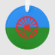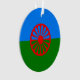 Drapeau voyageur tzigane officiel Romany de vert et bleu représentant la terre et le ciel avec une roue de wagon rouge, représentant Voyage.