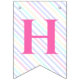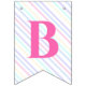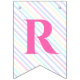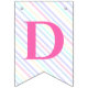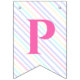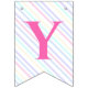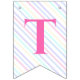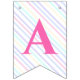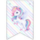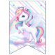 Jetez des drapeaux à une fête d'anniversaire magique avec une adorable licorne avec des ailes dans les nuages sur un arrière - plan arc-en-ciel.