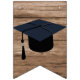 Les drapeaux de Bunting Party de Graduation en Bois rustique sont dotés d'arrière - plan en bois rustique, d'une casquette de graduation et d'un modèle de texte blanc moderne.Un design parfait pour célébrer le succès de graduation.Cliquez sur le bouton de personnalisation pour le customiser dans votre propre texte.