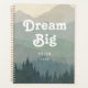 Un planificateur boho branché avec des montagnes bleues et un arrière - plan de forêt surmonté d'un titre éditable "Dream Big" en police rétro blanche. Personnalisez avec votre nom et votre année.