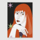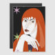 Belle fille aux cheveux rouges sur la nuit noire avec étoiles colorées arrière - plan