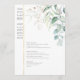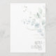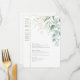 Des aménagements de verdure inspirés de la nature, comme des eucalyptus à gomme bleue avec des éclaboussures de feuilles d'or et d'or, ainsi que des aménagements de design uniques en font un ensemble mariage passionnant pour n'importe quelle période de l'année. Le menu de la réception de mariage présenté ici présente une bordure feuillue dans le coin supérieur et un arrangement doux et fané sur le dos. Ajoutez vos sélections de menu, vos noms et votre date de mariage à l'aide du modèle fourni. Visualisez le lien de collection sur cette page pour voir tous les éléments correspondants dans cette belle conception ou recherchez ID817 pour voir d'autres pièces et choix de couleurs pour cet ensemble.