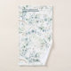 De délicats arrangements de feuillage avec de petites accents de fleurs dans des tons doux et rêvés de vert, d'or et de bleu poussiéreux avec des éclaboussures de parties scintillant et de faux cadres de coin en feuille, forment le motif arrière - plan pour cet élégant ensemble de serviettes. Reportez-vous à ID817 pour voir d'autres produits avec design, y compris le papier à lettres mariage correspondant.