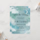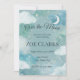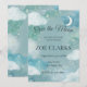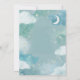 Soft watercolor aesthetic in soothing shades of blue, green, teal, and sky blue with hand-drawn constellations and sparkling stars for a personalized, artisan feel. The crescent moon centerpiece symbolizes new life and wonder, while gentle drifting clouds add depth and whimsy. Features playful script font for easy-to-read celebration details with a fully customizable text area for all your party information.