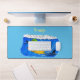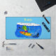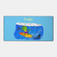 Notre drôle de lézard surfant avec des requins. Ajoutez votre propre texte pour le rendre spécial.