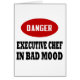T-shirts et cadeaux de chef rigolotes avec un signe de danger rouge et les mots chef exécutif de mauvaise humeur.