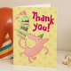 Un cochon heureux pour un carte de remerciements d'anniversaire. Utilisez "Personnalisez ce modèle" pour ajuster le "Merci !" et "pour aider à rendre mon anniversaire spécial" texte et créer une carte unique customisée. Doté d'un cochon brillant, sous un gâteau de couche de teetering avec des éclats de glace verte et surmonté de bougies roses.