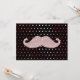 Moustache poupée rose poupée avec motif pois rose et blanc coloré Un design rétro cool avec une moustache drôle geek des années 80 sur arrière - plan noir. Idée cadeau de glamour parfaite pour elle à chaque occasion