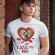 Un drôle de t-shirt de propriétaire d'animal de compagnie avec l'adage "I love my dog", avec une photo de votre chien en forme de coeur d'amour, et une diffusion de petits coeurs rouges.