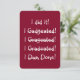 "Je l'ai fait ! J'ai... fini !" Drôle, humoristique, hilarant, amusant, rouge / bordeaux, personnalisable, invitation à la remise des diplômes. Invitation amusant pour les garçons et les filles diplômés de la maternelle, du collège ou de l'université. Grande carte de faire-part personnalisée pour les diplômés de tous âges.