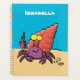 Cette caricature joyeuse de crabe ermite est un violet et orange clair et coloré avec un arrière - plan bleu. Emmène-moi à la mer !