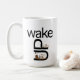 Cette grande tasse à café noire et blanche amusante est dotée d'un chien de couchage ludique et d'une typographie "Wake Up" pleine d'esprit. Conçu pour 15 onces de Mug également disponible en 11 onces. Coffre-fort à utiliser dans les micro-ondes et lave-vaisselle.