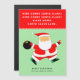 Des cartes de fin de année de Noël créatifs de bowling mettant en vedette un bowler amusant du Père Noël qui descend sur la voie du Père Noël.