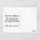 Si vous cherchez des cartes postales drôles et de nouvelles annonces d'adresses, vous êtes au bon endroit. A l'avant de la carte postale se trouve un cabine sepia, cosy mais minuscule, dans les bois. Vos destinataires se demanderont si vous êtes sérieux ! De l'autre côté, un modèle facile à suivre avec élégance pour mettre votre nouvelle adresse et un rappel amical pour rester en contact.