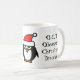 Drôle OCD obsessive noël trouble tasse de café. Coupe de Noël mignonne avec citation humoristique et pingouin portant un casquette du Père Noël. Fun xmas thème 11oz drinkware pour la maison ou le bureau. La typographie Whimsical avec dessin animé animal.