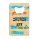 Ouverture de bouteille qui dit "Church Key" sur l'art de plage patiné
