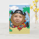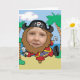Drôle pirate de bande dessinée debout sur une plage avec le visage coupé afin que vous puissiez ajouter votre propre photo. Ça fait un grand cadeau !