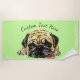 Carlin Dog Funny Beach Serviettes avec texte personnalisé - Peinture MIGNED - Personnalisable - Choisissez / Ajoutez votre texte et vos couleurs