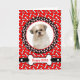 Carte de charme avec votre photo d'animal de compagnie préférée, ou photo de famille. Motif en os de chien rouge entourant un cadre modèle photo. Le message à l'intérieur dit : "Pas d'os à ce sujet - Ça va être une très bonne année !"