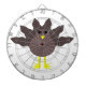Cette superbe planche de fléchettes présente un drôle de dessin d'une dinde aux grands yeux noirs, un petit bec jaune et des plumes de queue qui s'accrochent. Les pieds sont orientés dans des directions opposées, ce qui rend la dinde maladroite. Ce design amusant est idéal pour Thanksgiving.