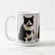 Voici trois vues d'un drôle de chat tuxedo exprimant son opinion. Critique alimentaire ? Analyste politique ? Guru des relations ?