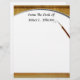 Voici une superbe papeterie à en-tête personnalisée avec un vieux design rétro, parchemin vintage look bordure design! Personnalisez facilement cette papeterie personnalisée En-têtes de lettres du bureau de... avec n'importe quel nom. L'illustration crayon juste en dessous du nom ajoute à la conception unique ou peut être supprimé si pas nécessaire. Beaucoup d'espace de copie pour écrire plus tard. Grande idée cadeau personnel pour les enseignants ou seulement pour quiconque écrit! Montré est le papier tonique chaud bouffant~d'autres papiers sont disponibles.