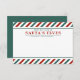 Cette carte de vœux de Noël mignonne représentant le Père Noël comporte des rayures rouges et vertes et un message : De la part du bureau des lutins du Père Noël. Écrivez simplement un message personnel et voilà ! Un excellent accessoire de Noël pour quiconque a des enfants. N'hésitez pas à personnaliser ou à modifier davantage en cliquant sur le lien "personnaliser davantage" et utilisez l'outil de conception pour modifier ce modèle. Vous pouvez ajouter du texte, changer la couleur ou ajouter d'autres éléments pour répondre à vos besoins. Si vous avez besoin d'aide pour les modifications ou si vous souhaitez des produits assortis, veuillez me contacter, Marjoke - Cirque Chic