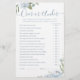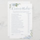 Amusez vos invités avec ce jeu de douche nuptiale amusant "over or under", dispose d'une aquarelle romantique florale en bleu poussiéreux et vert sauge, et élégant script moderne, simple et élégant, idéal pour la douche nuptiale boho moderne, des fêtes de mariage de jardin botanique. Voir tous les jeux de douche nuptiale en collection.