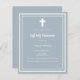 Arrière - plan bleu Dusty, décoré d'un cadre blanc, et d'une croix blanche Personnalisez et ajoutez le nom et les détails. Texte blanc. 1 feuille = 1 invite imprimé bord à bord.