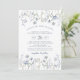 Le fleur sauvage couleur d'eau bleu foncé tombent faire-part de mariage floral. Faire-part de mariage de fleurs minuscules et bleues.