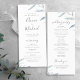 Moderne chic minimaliste aquarelle feuillage vert design dans la couleur bleu poussiéreux, simple et élégant avec noms de calligraphie, grandes cartes rondes de programme de mariage pour mariage moderne, mariage rustique, et mariage de jardin botanique en hiver. Voir toutes les pièces correspondantes de la collection