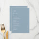 Dusty Blue 5x7" Mariage Menu Cartes Menu plat