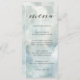 Dans un beau style peintre, ce menu mariage moderne présente des touches de brosse abstraites dans les couleurs éthérées cool du ciel avec des nuances de bleu, gris et blanc. Il ajoute une impression artistique unique à votre papeterie mariage. Personnalisez l'exemple de libellé de menu sur ce design avec votre menu de réception de mariage, de fête ou de banquet.