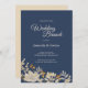 Cette invitation à brunch mariage Boho d'automne Dusty Blue combine une ambiance antique avec un look fleur sauvage bohème rétro. Les élégants fleurs sauvages beiges neutres, en plus de l'arrière - plan bleu poussiéreux, marine, avec sa typographie calligraphique classe, permettent un thème formel mais sauvage et fleuri, style vintage de célébration du mariage.