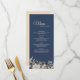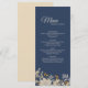 Ce menu Boho d'automne Dusty Blue associe une ambiance ancienne à un style fleur sauvage rétro et bohème. Les élégants fleurs sauvages beiges neutres, en plus de l'arrière - plan bleu poussiéreux, marine, avec sa typographie calligraphique classe, permettent un thème formel mais sauvage et fleuri, style vintage de célébration du mariage.