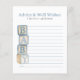 Invite guests to leave meaningful advice and heartfelt wishes for the parents-to-be with this keepsake baby shower card. Designed with a soft dusty blue gingham border and vintage-style baby block artwork, it pairs beautifully with classic, boy, and neutral baby shower themes. Display at each place setting or alongside the guest book for a treasured memory to keep.