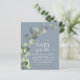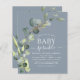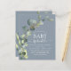 Budget Dusty Bleu Eucalyptus Verdure Aquarelle botanique Succulente Printemps Genre Neutre Bébé Garçon ou Bébé Fille Bébé Sprinkle Douche Invitations sur arrière - plan blanc - comprend belle et élégante typographie script avec feuilles botaniques modernes et la verdure pour la fête spéciale Mère à être.
