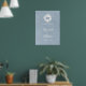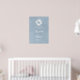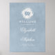 Affiche de bienvenue de mariage bleu foncé avec monogramme de couronne fleurie de respiration pour bébé