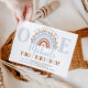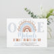 Une invitation amusante à l'arc-en-ciel avec des tons bleus poussiéreux qui est parfait pour une soirée à thème arc-en-ciel boho pour votre petit premier anniversaire!