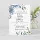 Fleurs d'aquarelle dans le bleu poussiéreux chic avec branches botaniques, faire-part de mariage. Personnaliser texte, style de police, couleur et taille.