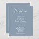Le prospectus de la réception de mariage présente un design typographique élégant, moderne et propre, avec un code couleur bleu poussiéreux. Ce dépliant de réception vous permet de customiser avec les détails de votre journée spéciale.
